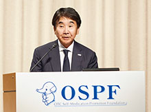 シンポジウムは例年通り、佐藤誠一理事長のあいさつで幕を開け、本年度の助成対象に決定した18テーマの紹介とともに、「調査・研究助成」「啓発事業等助成」それぞれの代表者へ目録が授与されました。